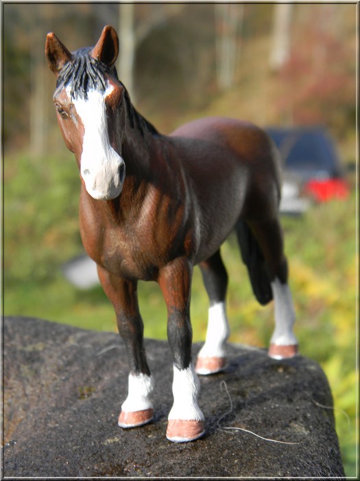 Das Grundmodell für " SWC Dunhillo " war die Hannoveraner Hengst von Schleich. Ich habe das Pferd zu einem schönen Braunen mit vielen Schattis und reale eyes sowie mehrfarbigen Hufen bemalt. Außerdem wurde er zum Wallach.